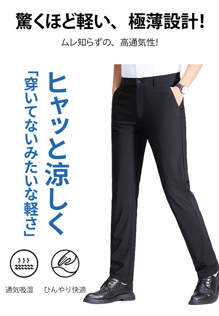 薄手メンズスラックスパンツ 伸縮性抜群 涼感 快適
