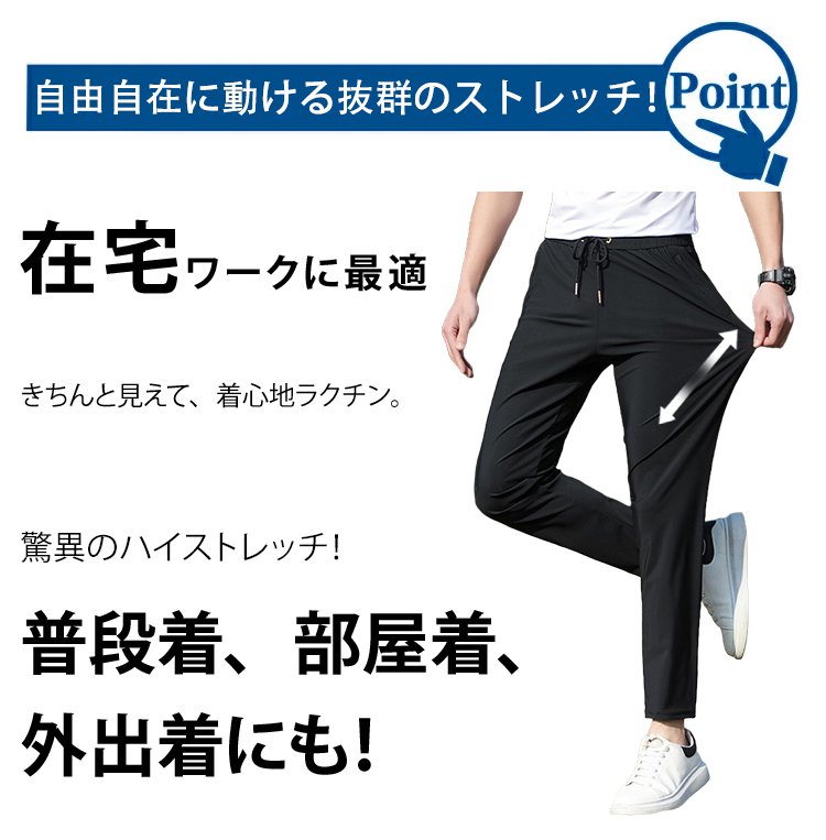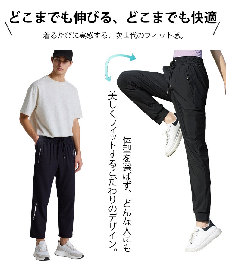 夏用アイスシルクカジュアルなスポーツパンツ 通気性とサラッとした肌触り 薄手ストレートロングパンツ